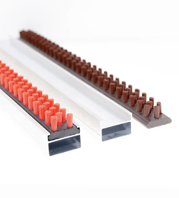 - Щетки с алюминиевым профилем: Представляют собой полосовую щетку, закрепленную в специальном держателе из алюминиевого профиля, что обеспечивает надежный монтаж и возможность замены самой щеточной ленты.