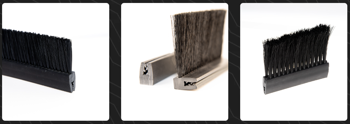 - Уплотнительные щетки: Применяются для герметизации проемов, дверей, люков, корпусов оборудования. Они предотвращают проникновение пыли, влаги, сквозняков, сохраняя заданный микроклимат внутри.