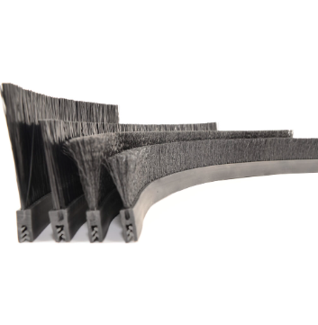 - Полосовые щетки: Представляют собой ряд щеточных нитей (ворса), закрепленных в основании. Основание может быть выполнено из различных материалов, например, пластика или металла. Главное преимущество – гибкость и возможность создания непрерывного уплотнения путем соединения нескольких полос. Они могут быть установлены под различными углами, обеспечивая плотное прилегание к поверхности.