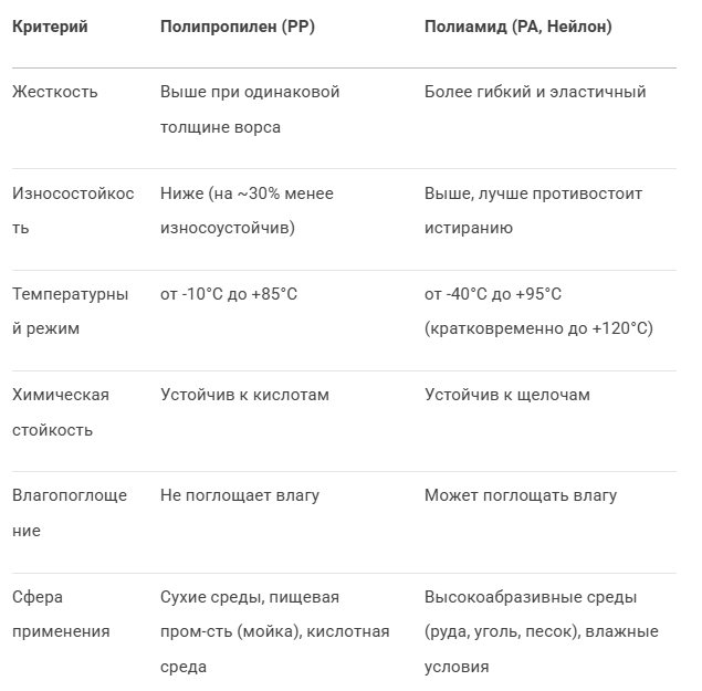 1. Какие щетки лучше для конвейерной ленты: полиамид или полипропилен? 🤔